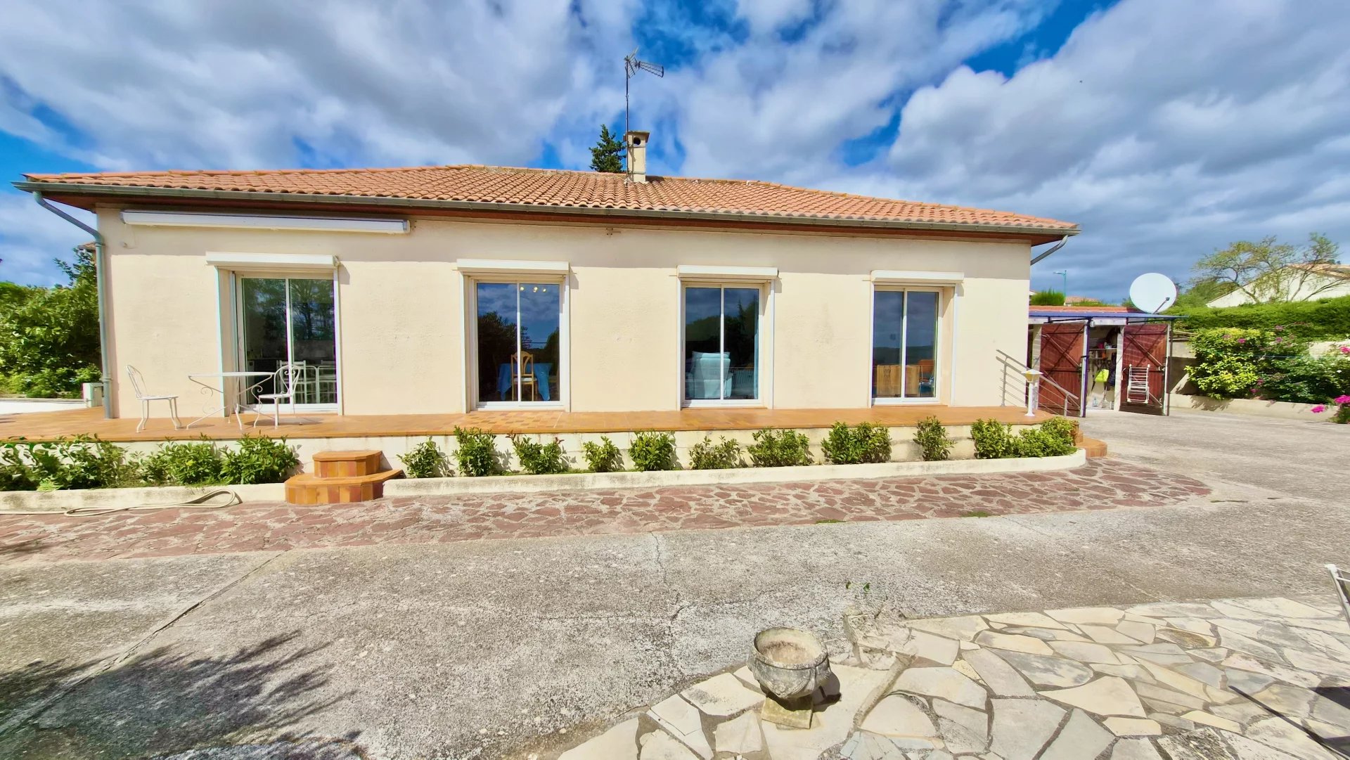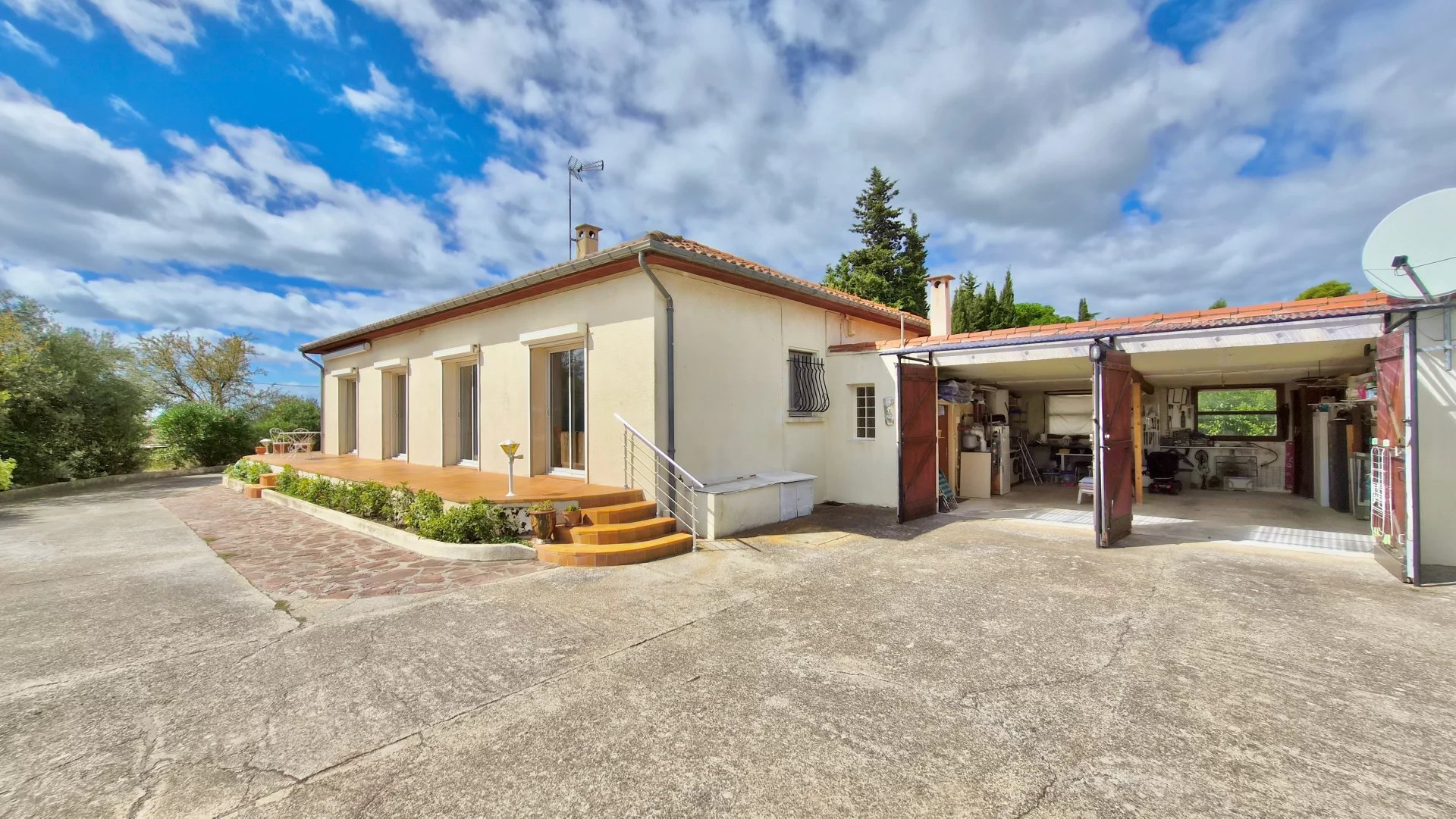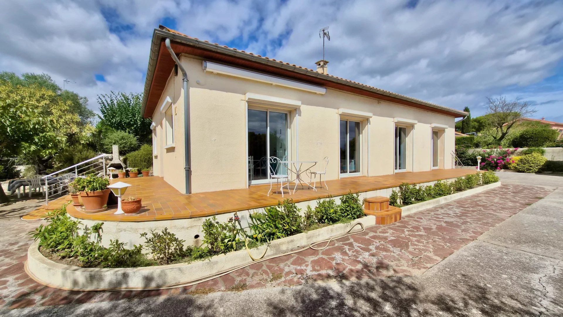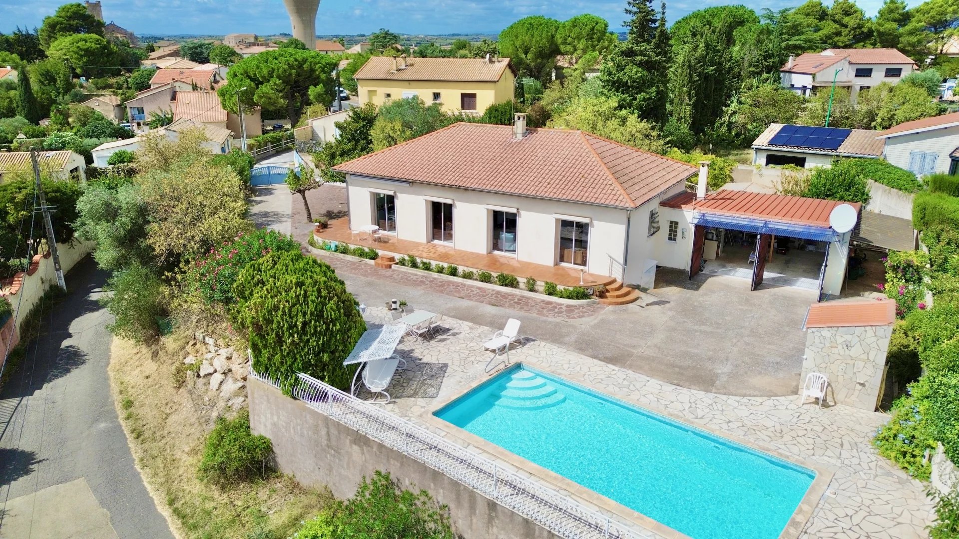 Set on the edge of a sought-after village only a few kilometres from the vibrant market town of Pézenas, this detached 120m² home combines modern comfort with a peaceful countryside setting. Perfect as a full-time residence or holiday escape, it offers generous living space, a large garden, and sweeping views across the surrounding landscape.